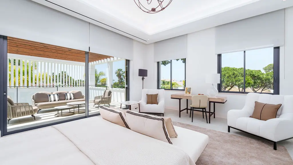 Portugal Capital Gains Tax context with a bright, elegant living and dining interior in a Portuguese property.