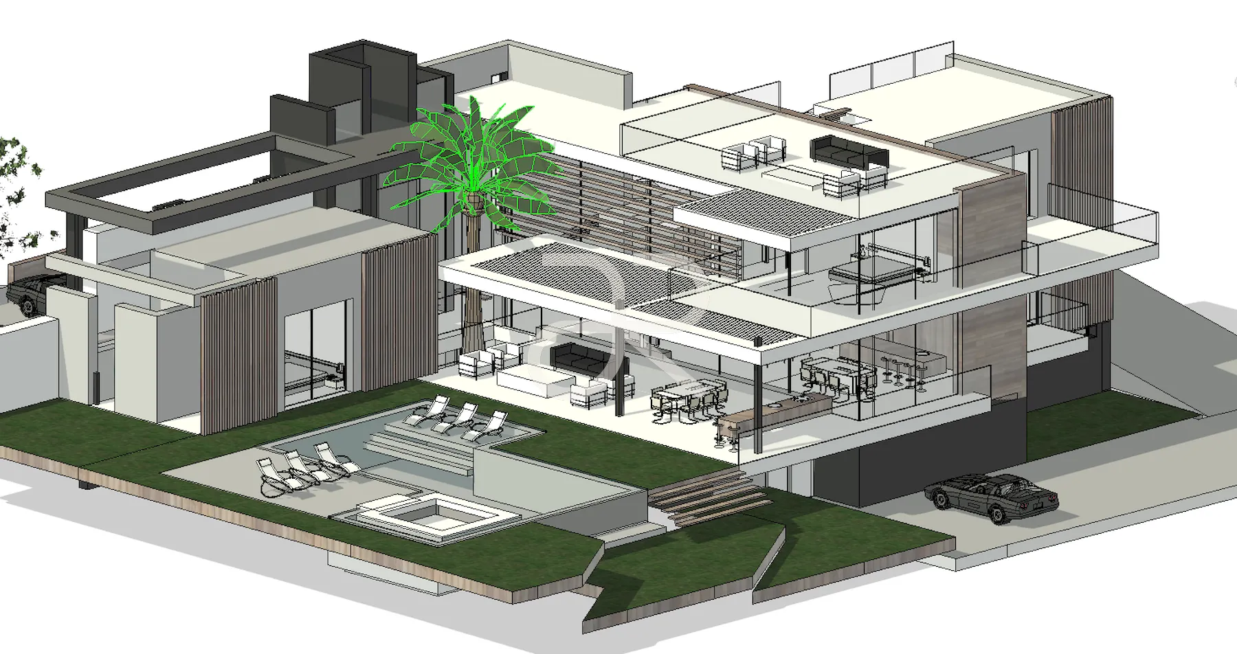 Set on an elevated 1,220 sqm plot, the property offers 768 sqm of interior living space, complemented by generous terraces and a panoramic rooftop. The design maximises natural light and creates a seamless connection between indoor and outdoor living.